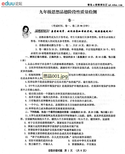 青岛中考网讯:2014年青岛市市北区3月底统考思想品德考试已经顺利结束了。小编第一时间为大家上传真题,希望对大家有帮助![查看原帖参与讨论]