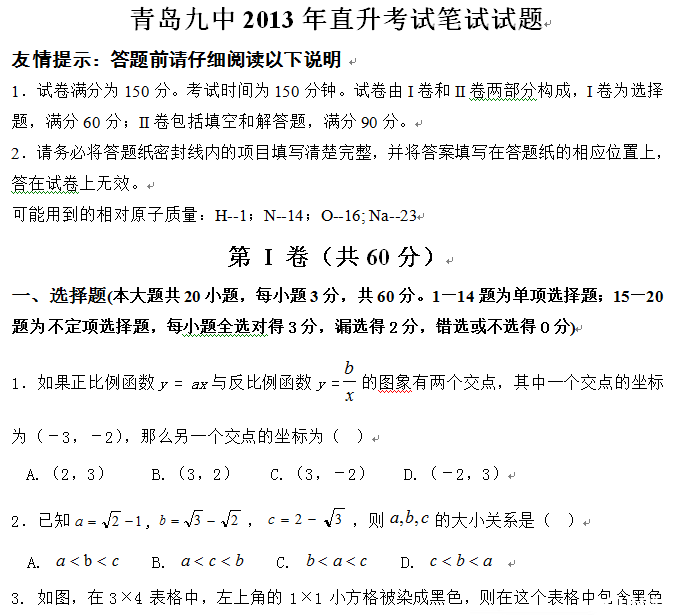 青岛中考网:感谢青岛九中提供2013年直升考试笔试试题及答案,希望希望可以帮助到大家!