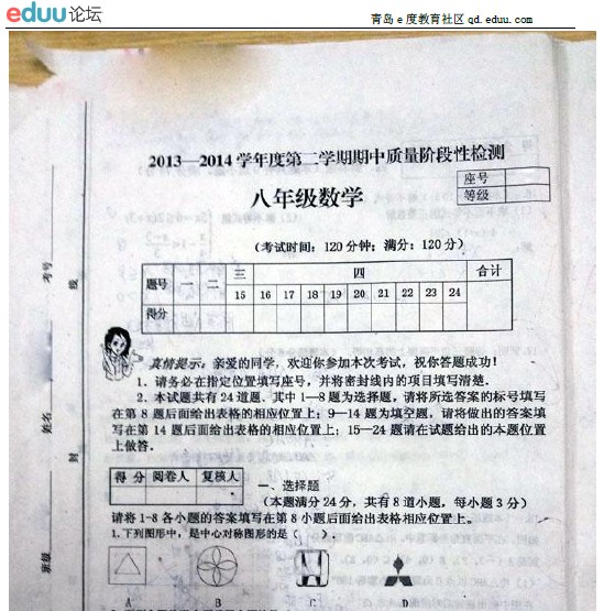 【查看原帖并参与讨论:2014年青岛5中八年级(下)期中考试数学试题】