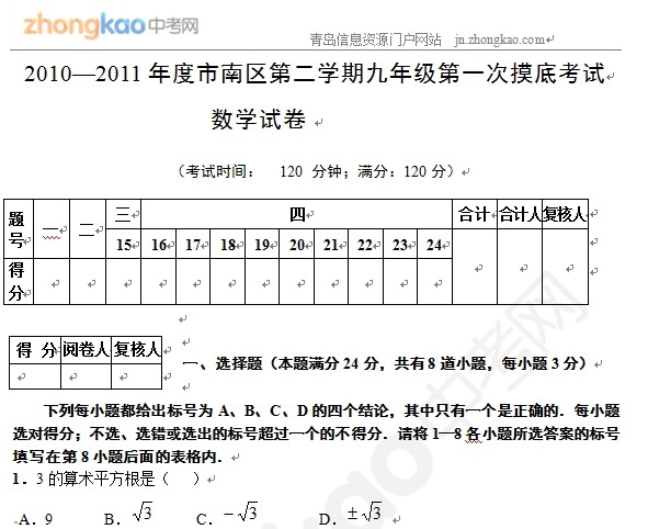 您现在的位置:中考青岛站 > 中考备考 > 中考一模 > 数学一模 > 正文
