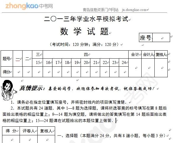 点击下载附件:2013年青岛中考数学第二次模拟考试