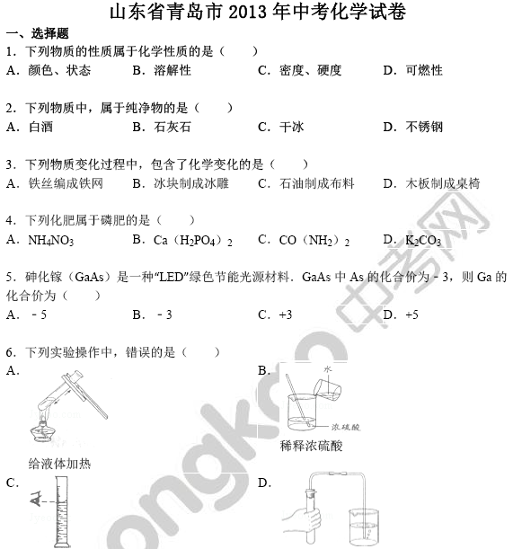 青岛中考网讯 中考网为大家分享2013年青岛中考化学试题及答案,希望可以帮助到大家!