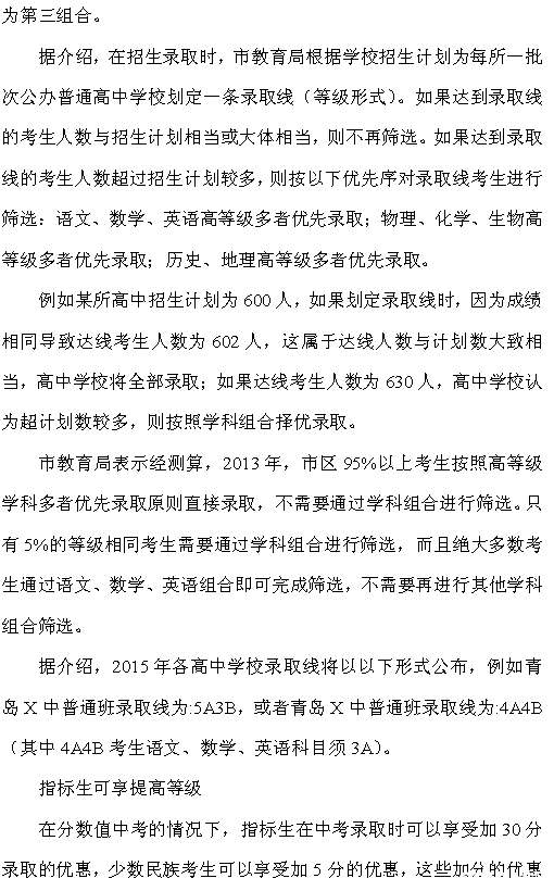 【查看原帖并参与讨论:青岛市教育局长详解2015年中考等级制的录取招生细则】