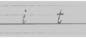 5)小写字母i和t也占一格、二格。但t的上端在第一格中间,短横重合第二线;i的小圆点在第一格中间稍偏下处。