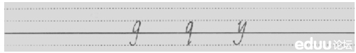 6)占二格、三格的小写字母有g,q,y3个,它们的笔画的顶端要紧贴第二线,下端要紧贴第四线,不可离线也不可出格。