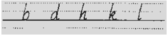 4)占一格、二格的小写字母有b,d,h,k,l共5个,它们笔画的上端必须顶第一线,下端必须顶第三线,不许离线也不许出格。