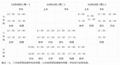 现在已经到了10月末,11月我们即将开始期中考试了。现在就来看看市北区期中考试的时间表吧!