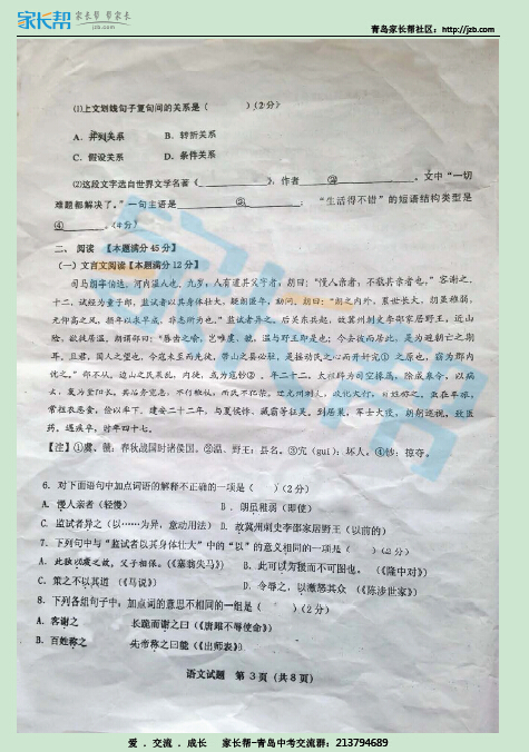 2015青岛市北区中考一模语文试题(3)
