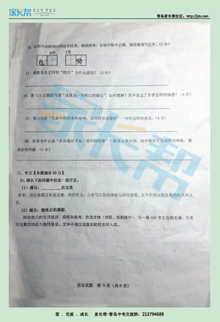 您现在的位置:中考青岛站 > 中考备考 > 中考一模 > 语文一模 > 正文
