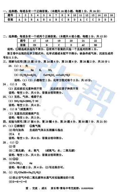 2015青岛化学升学复习指导答案(18)
