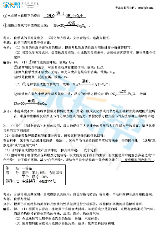 2015年青岛中考化学真题答案公布(图片版)(13)