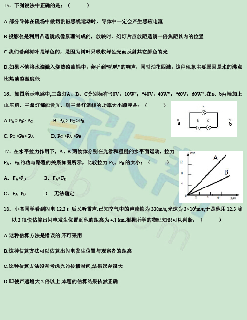 2012年青岛九中直升考试数理化试题(5)