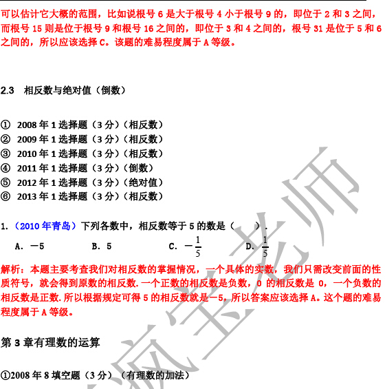 青岛中考数学知识点分析(七年级)(2)