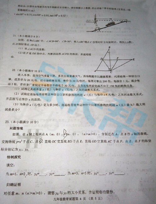 2014-2015市南区59中九年级期末考试数学试题(4)
