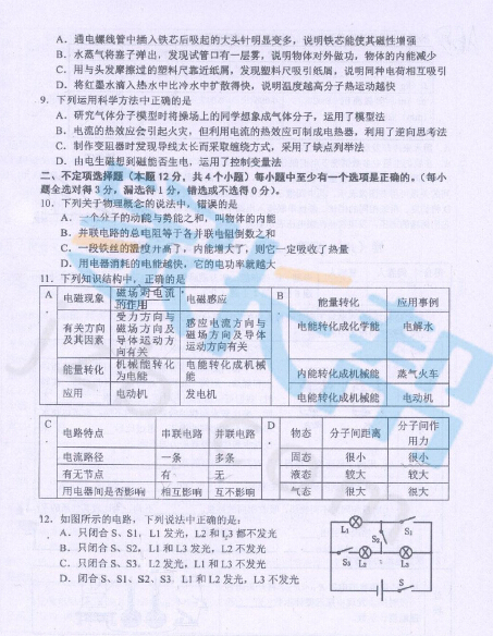 2014-2015平度市九年级期末考试物理试题(2)