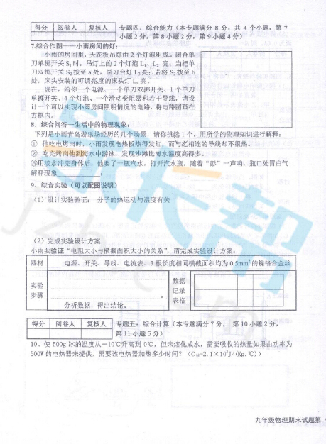2014-2015平度市九年级期末考试物理试题(7)