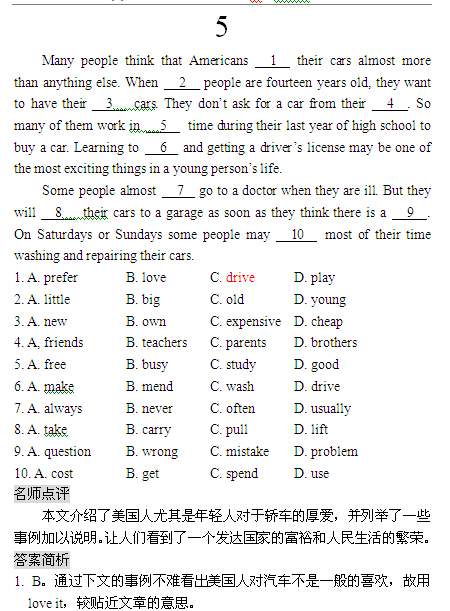 2016青岛中考英语复习:完型填空104篇精编(5)