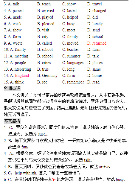 2016青岛中考英语复习:完型填空104篇精编(14)(2)
