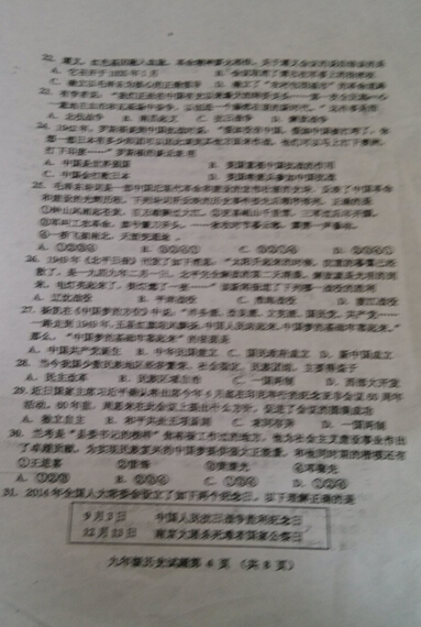 2015届青岛开发区十二中九年级第二次模拟历史试题(4)