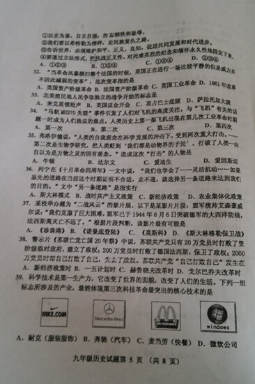 2015届青岛开发区十二中九年级第二次模拟历史试题(5)