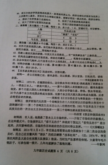 2015届青岛开发区十二中九年级第二次模拟历史试题(6)