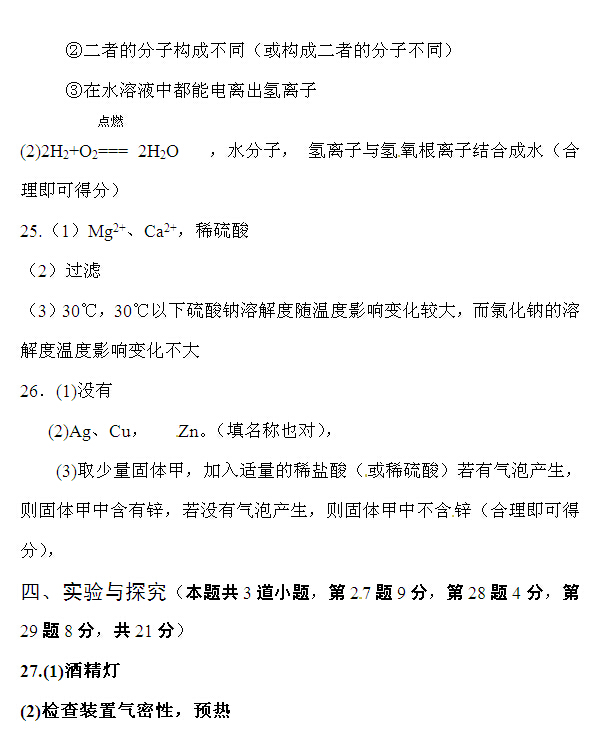青岛市开发区十二中2015届九年级一模化学试题答案(2)