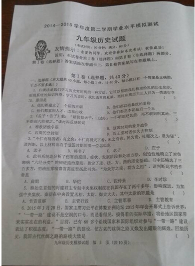 青岛市开发区十二中2015届九年级一模历史试题