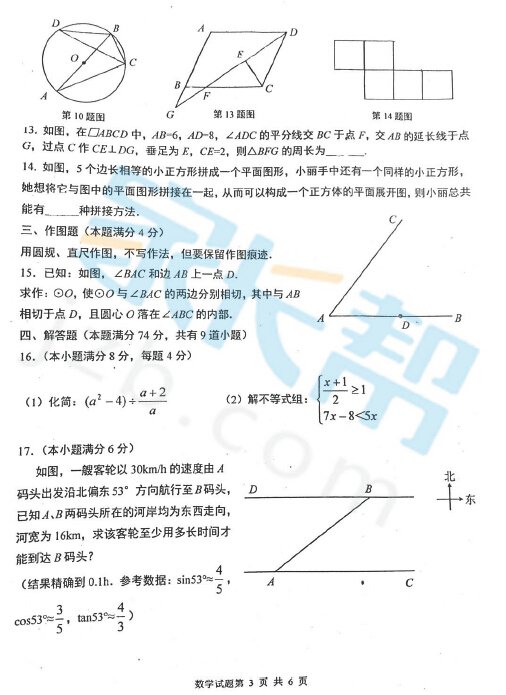 2016年4月青岛市南中考一模数学试题(3)