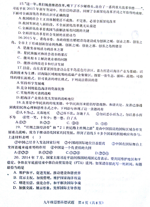 2016年4月青岛市北区中考一模思想品德试题(4)