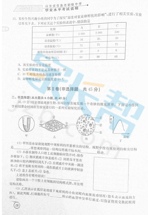 2016年青岛中考生物考试说明(附样题及参考答案)(14)
