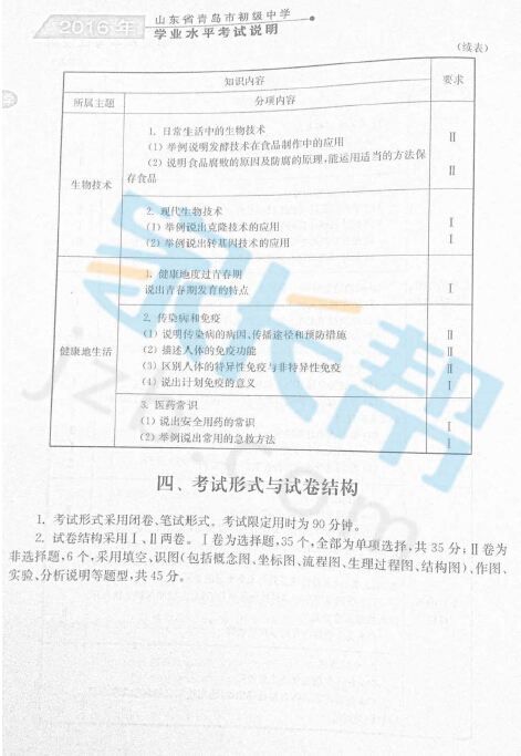 2016年青岛中考生物考试说明(附样题及参考答案)(8)