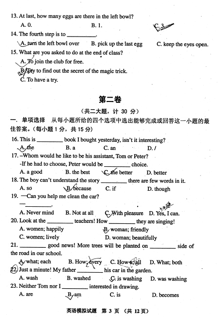 2016年5月青岛黄岛区中考二模英语试题(3)