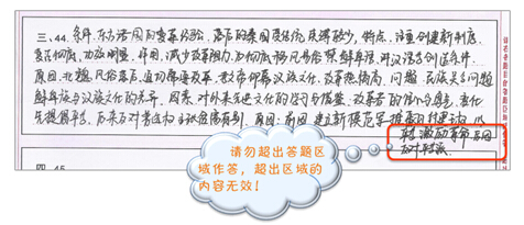 网上阅卷,如果把答案答有效区域外面,内容是无效的是扫不上电脑的,就算你答案答的再好,也是不得分的,这个一定要注意。