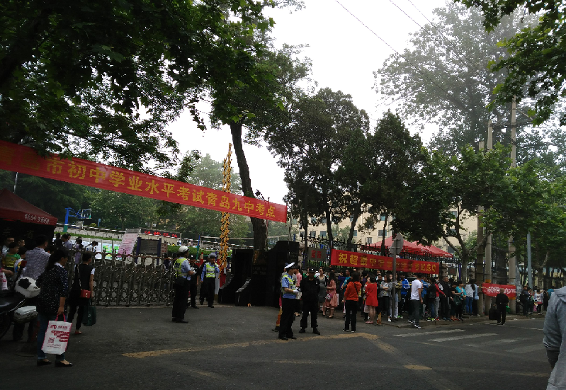 早上8:10,考生们陆续到达,在操场上按照考场有序的排着队。校外,交警设路障,执勤,维护道路的顺畅。家长们则等候在校外,记录着孩子们中考的历史瞬间。一起为考生加油