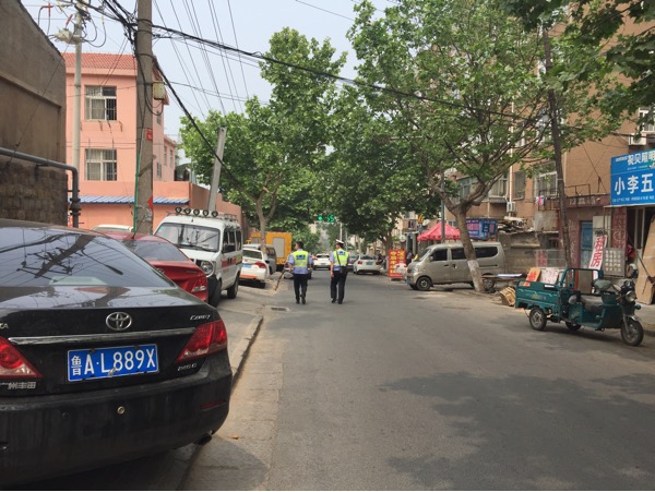 早晨开始道路拥挤,交警蜀黍一早就在疏通指挥,考生进场后送考家长都陆续走了。刚刚交警蜀黍又回来了,估计是为11点考完试道路堵塞提前到岗,真心赞一个!
