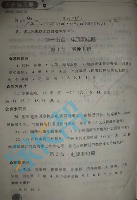 人教版九年级上物理配套参考答案(13-15章)(6)
