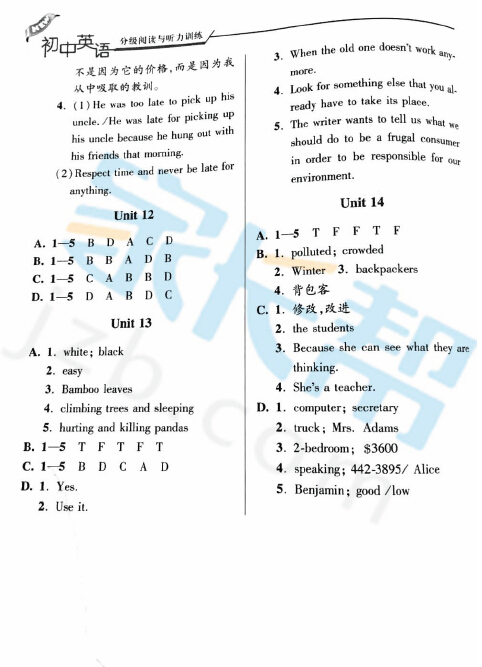 2016年九年级英语分级阅读与听力训练参考答案(3)