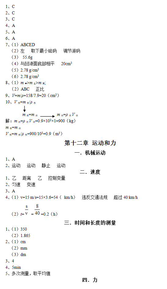 初中毕业升学复习(物理)指导书参考答案(15)