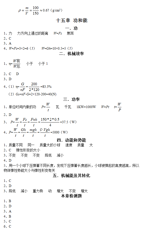 初中毕业升学复习(物理)指导书参考答案(22)