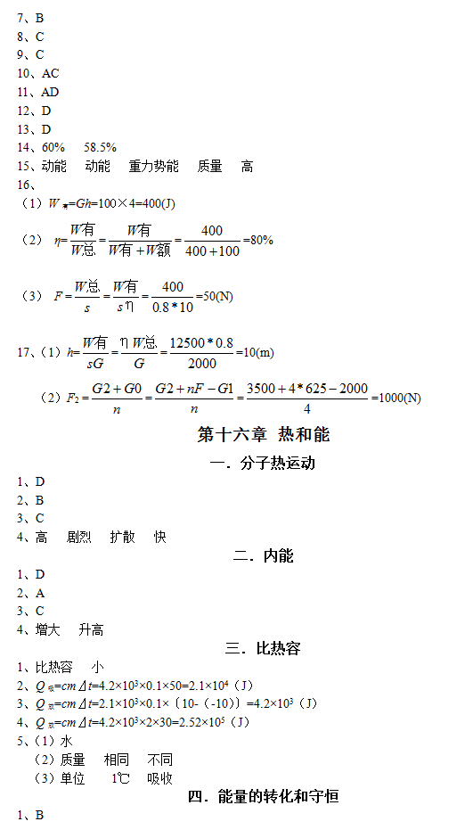 初中毕业升学复习(物理)指导书参考答案(23)