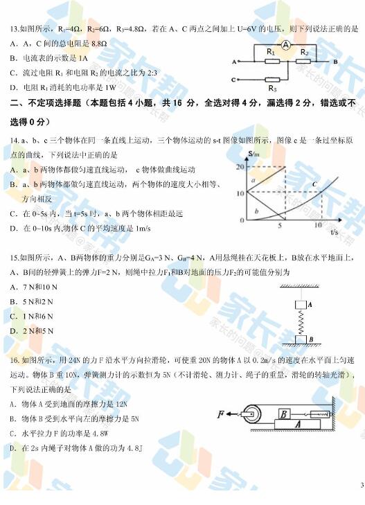 2016年青岛九中自主招生笔试物理化学试题(5)