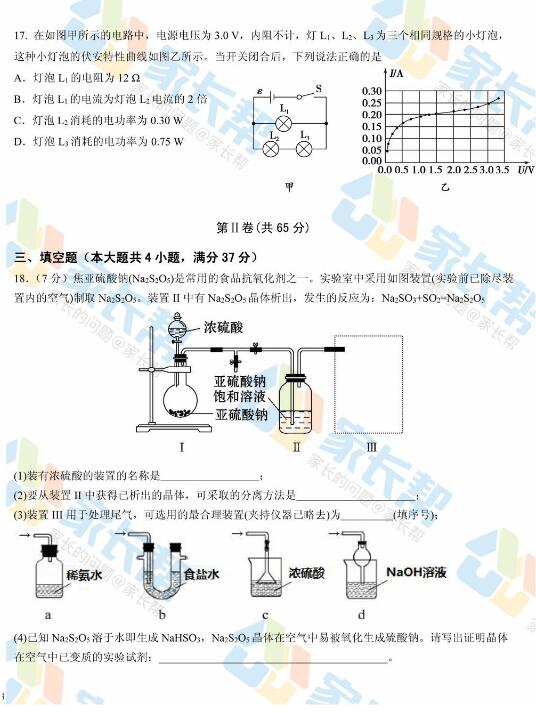 2016年青岛九中自主招生笔试物理化学试题(6)