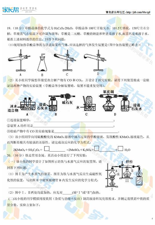 2016年青岛九中自主招生笔试物理化学试题(7)