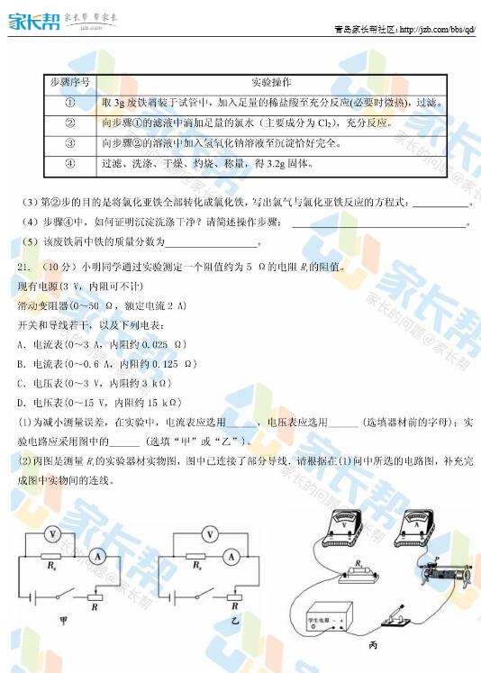 2016年青岛九中自主招生笔试物理化学试题(8)