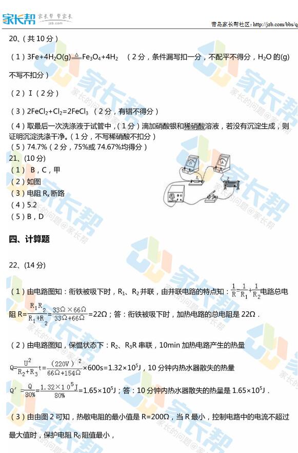 2016年青岛九中自主招生笔试物理化学试题答案(2)