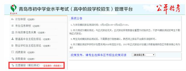 为做好今年初中学业水平考试报名工作,保证平台安全稳定运行,现将对9年级考生志愿填报、信息确认、考务管理等环节进行全面测试。