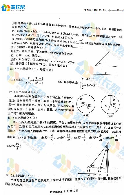 2017年青岛市南区4月中考一模数学试题(3)