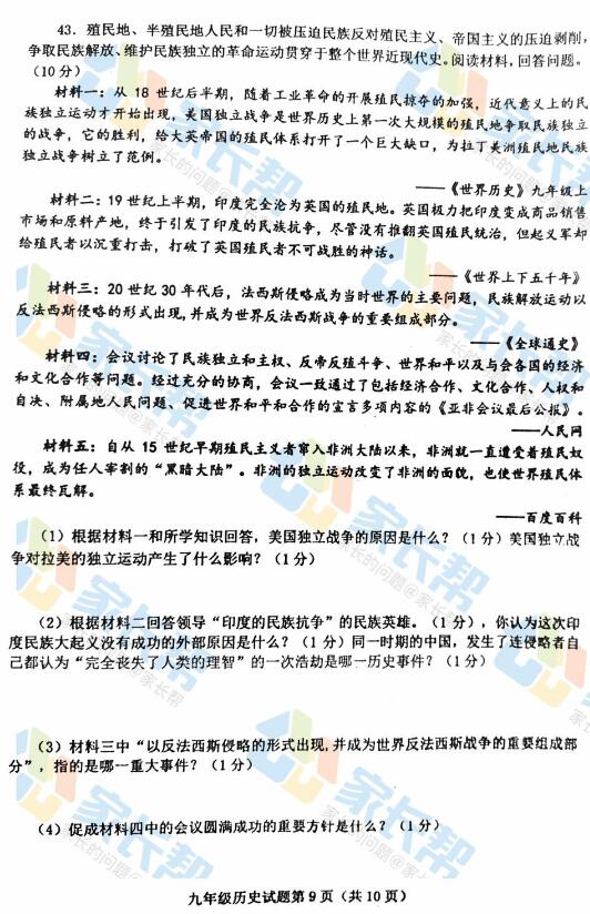 2017年青岛4月市南区中考一模历史试题(9)