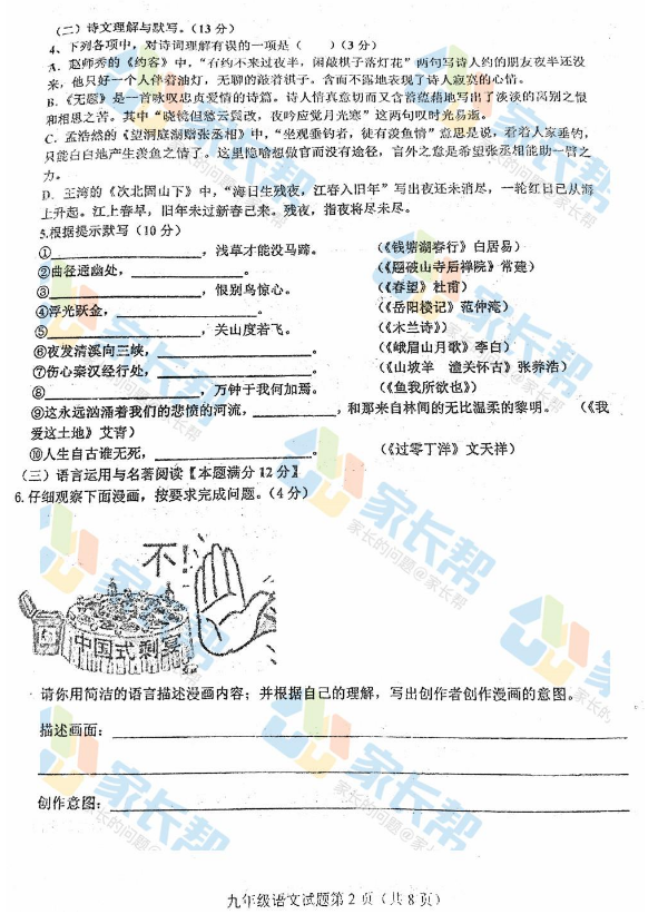 2017青大附中中考二模语文试题(图片版)(2)
