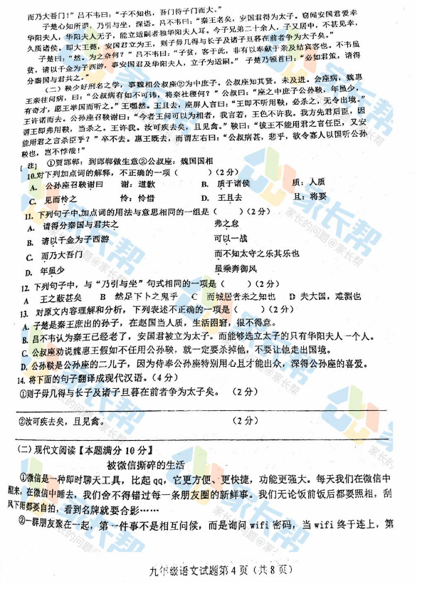 2017青大附中中考二模语文试题(图片版)(4)